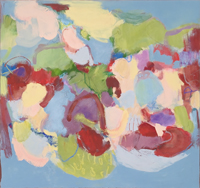 While Graham’s earliest works tended towards realism, her mature paintings and drawings are distinctly abstract. She begins with a recognizable subject, often a still-life arrangement or domestic interior, but abandons this imagery as the work inevitably progresses to become an exploration of colour, line, shape and texture. With striking colour combinations, dynamic shape relationships and delicate surface intricacies, Graham’s paintings present lyrical harmonies that are chained and ordered by their own internal logic.
