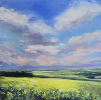 Raised on a family farm on the prairies and following a career in the Royal Canadian Air Force, Jodi Miller has now devoted herself to a full-time art practice for the better part of the last decade. She is fascinated by big skies and the way they allow for human connection and awe. Her impressionist landscapes invite the viewer to explore their own stories, discovering the layers akin to those in our lives, building on our identity and sense of belonging through connection to place.