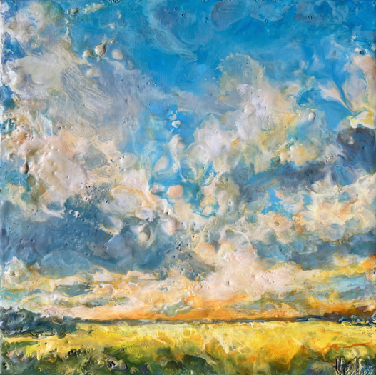 Kathy Bradshaw, "Land of the Living", KAB1432026, encaustic, oil stick on panel, 8" x 8", $295.00 Unframed CDN (+ taxes)