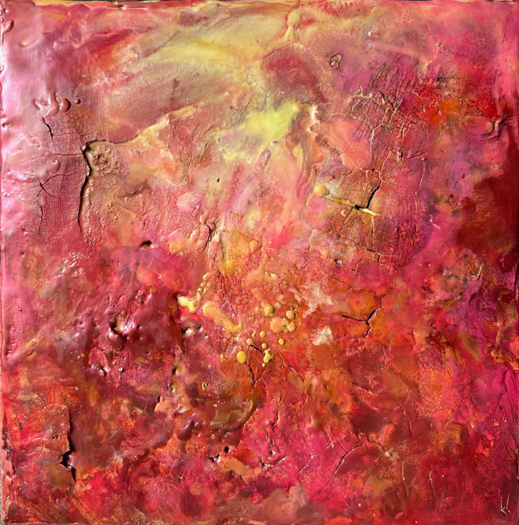Kathy Bradshaw, "Arbutus", KAB1362025, encaustic, ink, oil stick, fresco on panel, 10" x 10", $395.00 Unframed CDN (+ taxes)