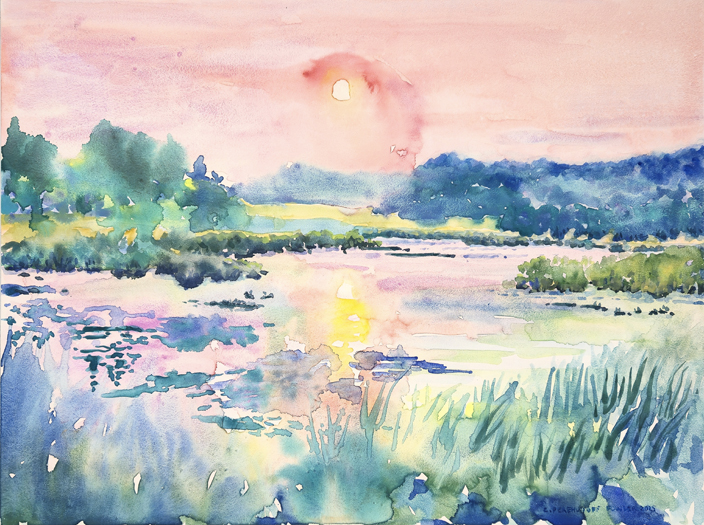 Catherine Perehudoff, "Dusk Over the Northern Prairie", CTP2622025, watercolour on board, 12" x 16", Price available upon request. Inquire