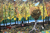 Paul Sisetski’s work is immediately striking for its rawness. His subjects are rendered roughly with speed and forceful energy, paint applied in confident yet unruly strokes. The figures in his scenes are as energetic as his brushstrokes. Most often active and in motion, their bodies are stretched and perspectivally distorted, limbs elastically extended or bluntly foreshortened. Coming out of the expressionist tradition, Sisetski uses exaggerated color, frenetic marks, and twisting forms to achieve a visceral, emotional impact.