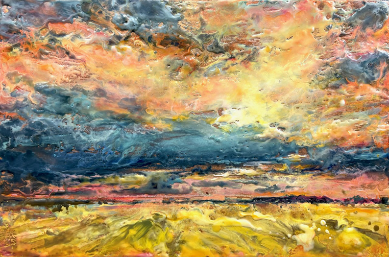 Kathy Bradshaw, "I Stand Before You", KAB1282025, encaustic, oil stick on copper over panel, 12" x 18", $695.00 Unframed CDN (+ taxes)