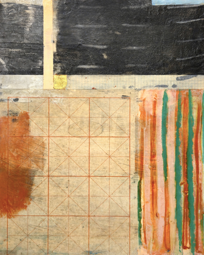 Anne Brochu Lambert, "Colored Fields: Panel 2", ABL0072023-2025, mixed media collage on birch panel, 18" x 14", $700.00 Unframed CDN (+ taxes)