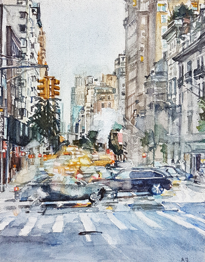 Kelly Goerzen, "I ❤ NY", KG4062020, Watercolour on absorbent ground on panel, 9" x 7", $375.00 Unframed CDN (+ taxes)