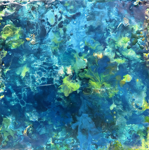 Kathy Bradshaw, "Pond", KAB1422025, encaustic, ink, oil stick, fresco on panel, 10" x 10", $395.00 Unframed CDN (+ taxes)
