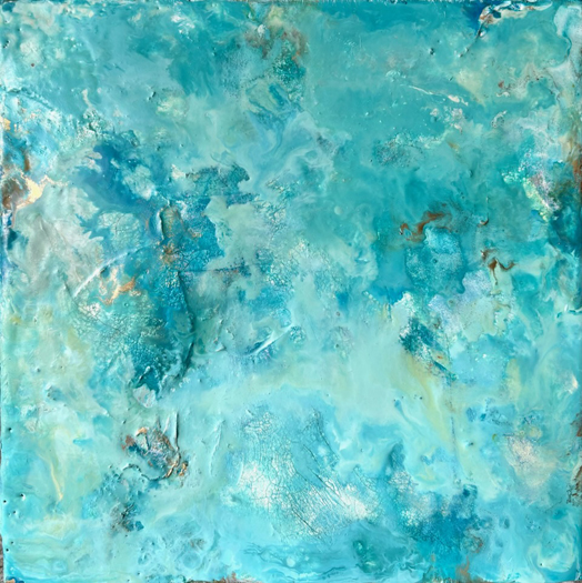 Kathy Bradshaw, "Seaglass", KAB1322025, encaustic, ink, oil stick, fresco on panel, 10" x 10", $395.00 Unframed CDN (+ taxes)