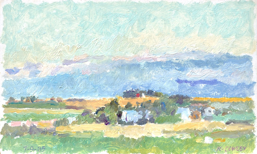 Reta Cowley, "Untitled (Farmstead)", RC1041985, Oil on masonite, 7" x 11 7/8", Price available upon request. Inquire