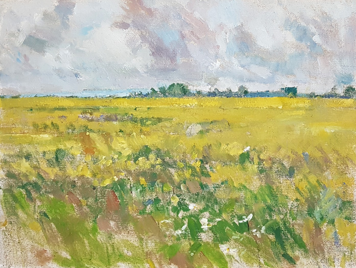 Clint Hunker, "Canola Field from Blazing Star", CH3652024, Oil on linen, 17" x 21", $1,750.00 Framed CDN (+ taxes)