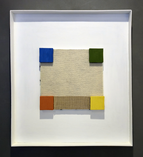 Jordan Danchilla, "Yellow, Red, Green, Blue", JD2692020, oil on canvas, muslin, linen, felt, 22-1/2" x 20", $1,200.00 Framed CDN (+ taxes)